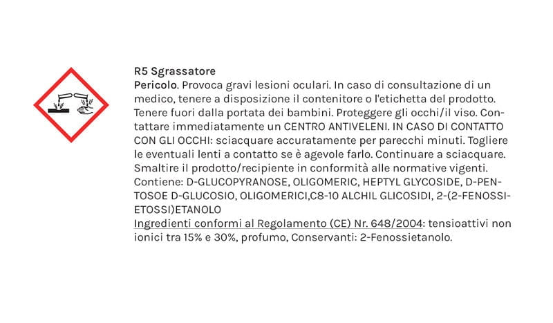 R5 Sgrassatore è la soluzione perfetta per eliminare qualsiasi traccia di grasso e sporco, anche su superfici incrostate. Efficace su piani di lavoro, fornelli, forni, cappe, acciaio e tanto altro.
