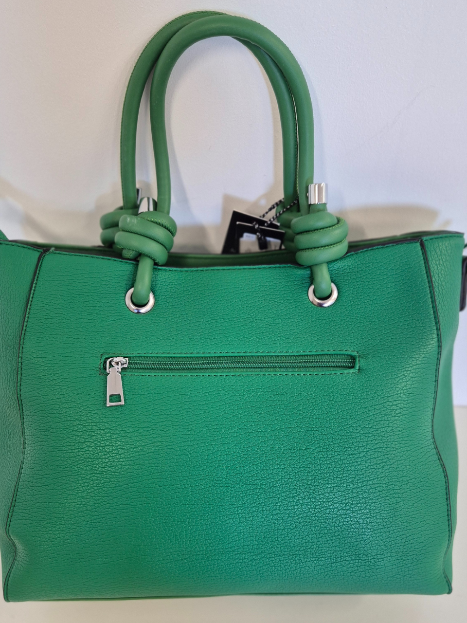 Descrizione prodottoOriginale, elegante e piena di personalità: la borsa Miranda è l’espressione perfetta di creatività e carattere. Realizzata in ecopelle di alta qualità, si distingue per i manici con elemento arricciato che donano un tocco distintivo e contemporaneo al design. Il colore verde brillante, vivace e sofisticato, illumina ogni look con stile e sicurezza, rendendo Miranda un accessorio unico e di grande impatto.