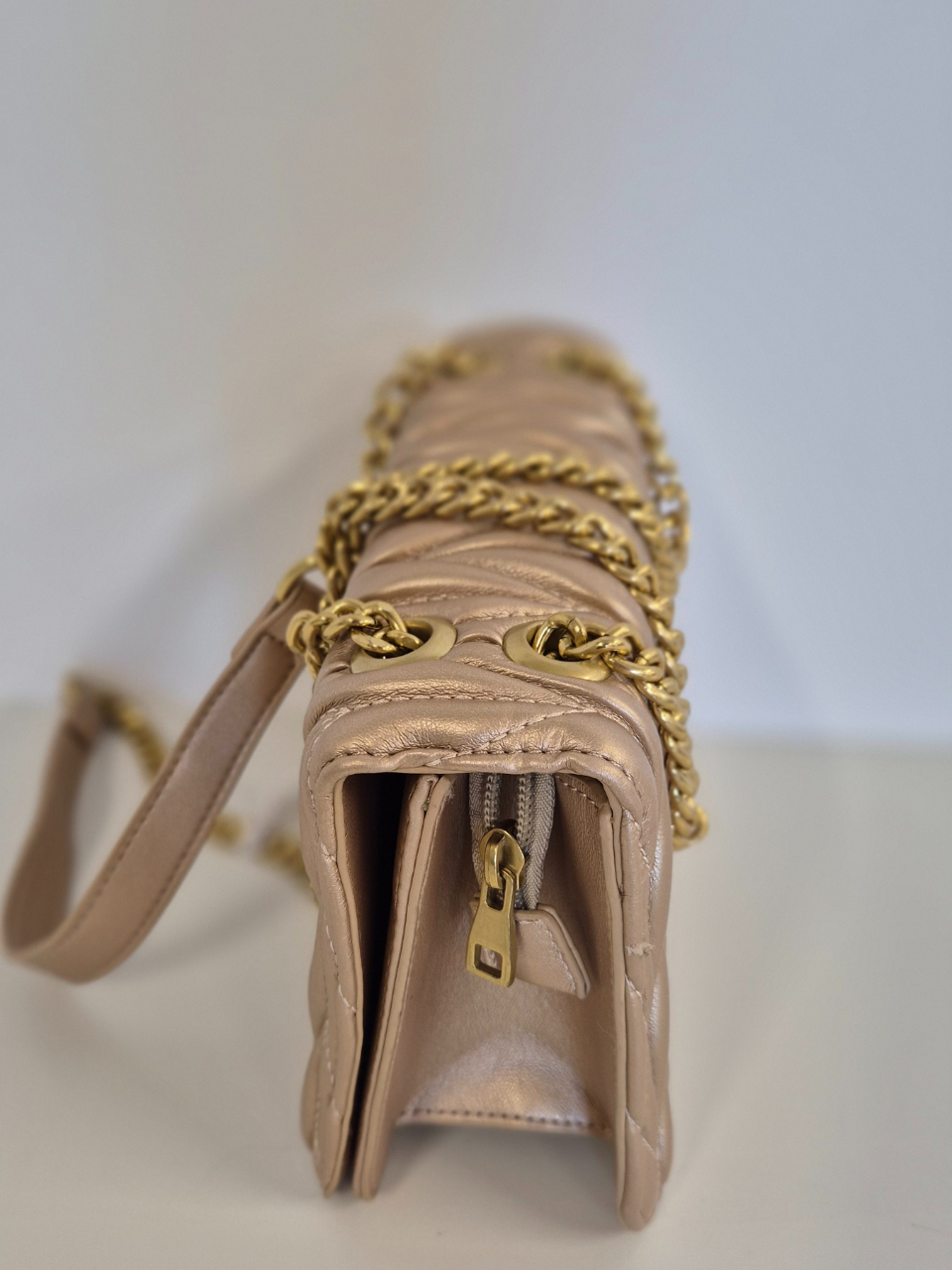- Dettagli: Finiture metalliche dorate e cuciture precise che esaltano la texture matelassé