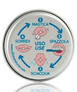 Officina Naturae ha escluso l’uso del fluoro nella formula, ingrediente discusso, per chi preferisce evitarlo nella propria routine di igiene. Nella formula di questo dentifricio pastiglie, inoltre, non sono utilizzato coloranti e SLS/SLES, per le esigenze di chi vuole rispettare uno stile di vita ecologico.