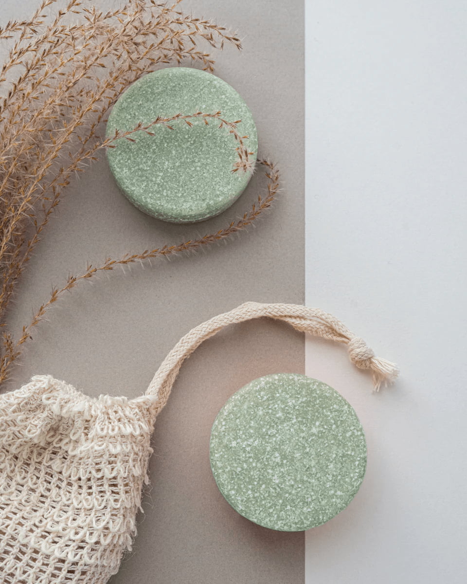- Attivare lo shampoo solido sotto l’acqua creando la schiuma.
