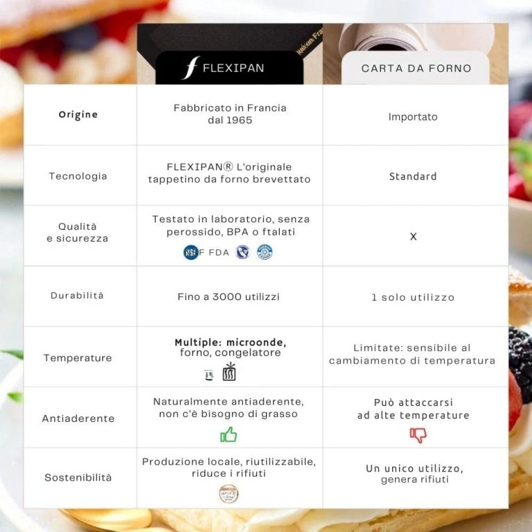 Il tappetino da forno è adatto a tutti i tipi di forni! Il tappetino ideale per cuocere tutte le vostre preparazioni.