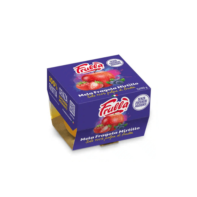 Mela, fragola e mirtillo si uniscono in una combinazione originale e ricca di sapore: una carica di frutta naturale perfetta in ogni momento della giornata.