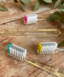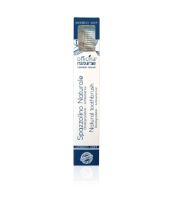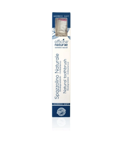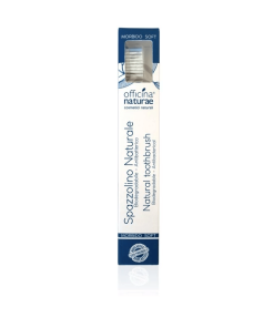 Scegli lo Spazzolino Eco-Sostenibile Officina Naturae, creato con materiali da fonti rinnovabili e provvisto di setole morbide, che non intaccano lo smalto e non irritano le gengive.