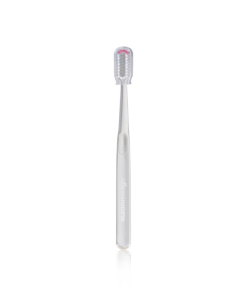 È uno spazzolino con setole morbide: le setole esterne, in bioplastica da olio di Ricino, non intaccano lo smalto e non irritano le gengive.